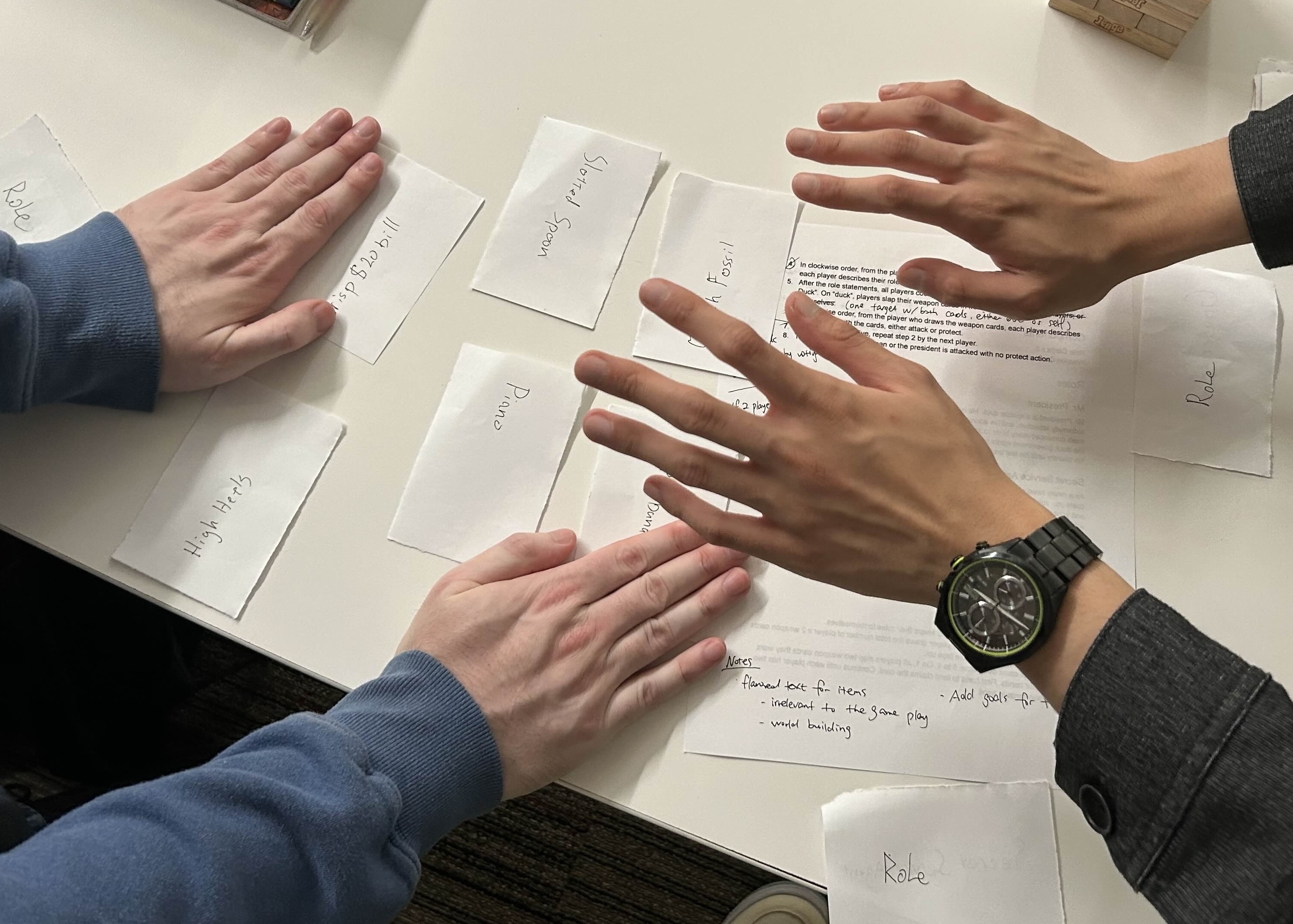 We had a very historic day as a team the past week because we had our first real disagreement about the game play after an internal playtest on Tuesday with our Rulebook v1. Overall, the gameplay went well and the game concluded successfully with either the Yellow House or the Gooseassin winning. However, we had different opinions on whether players should make statements about their identities before taking actions. Some of us felt this mechanic wouldn't be necessary and might disrupt the game flow, while others think it could guide players to make more strategic decisions based on what would benefit their side.
