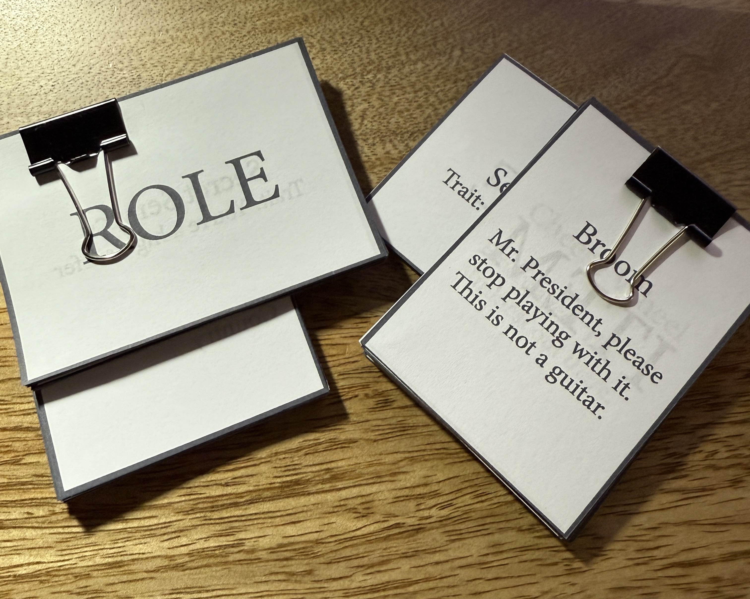 Bradley here. We did it, gamers! Well almost. Mr. President Duck is at a solid state right now after last weeks playtesting. The game ran smoothly, and the team is very proud of where it's at right now. There's just a few more tweaks, cleaning up of the itch page, and a lot of printing and cutting cards (don't worry, only I have to worry about that :') ). Anyways, I'll hand it off to Zi to discuss the next steps for MPD as we head into the final weeks of our class. Take it away, Zi!