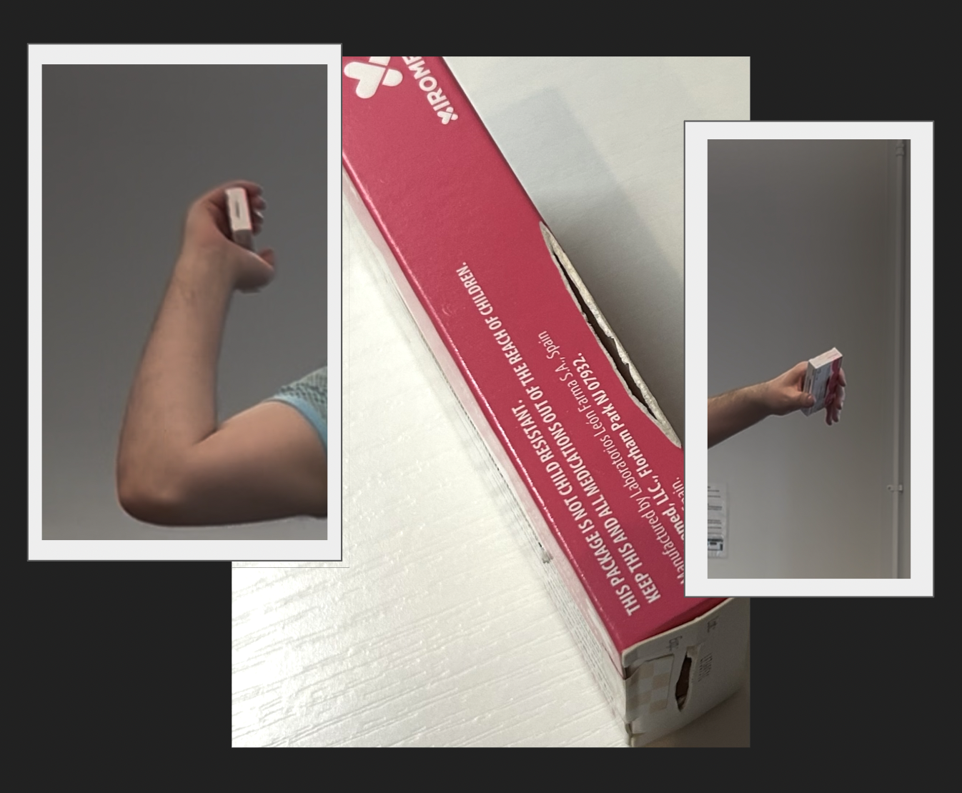 To prototype this mechanic, I cut up three pieces of cardboard each with a different print on it and put the pieces into a box with holes on the three sides. The player needs to shake the box 66 times in any direction while counting out loud, then collect the pieces that fall out. In the end, the player is asked to summarize the pieces with a word.